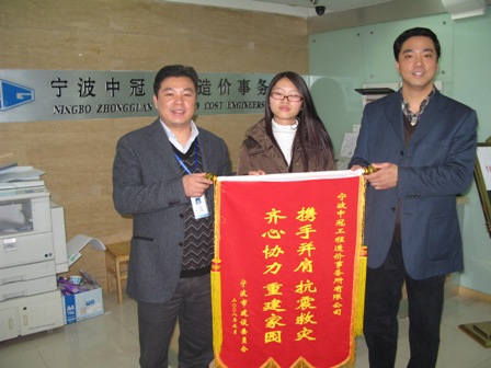 11月24日,市建委总工程师倪炜莅临我司调研指导工作,并代表市建委赠送了“携手并肩抗震救灾 齐心协力 重建家园”的锦旗。