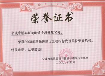 我司荣获2008年度先进建设工程招标代理单位荣誉称号
