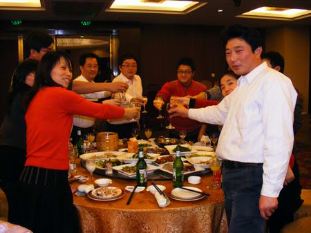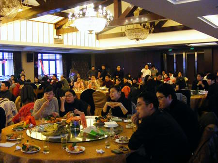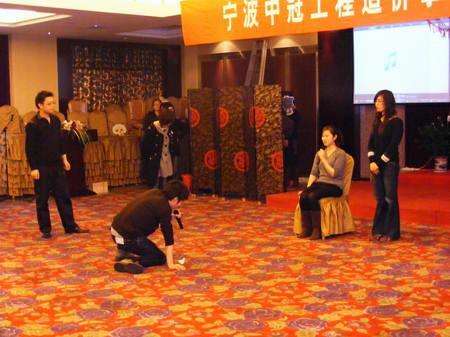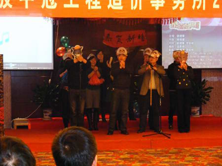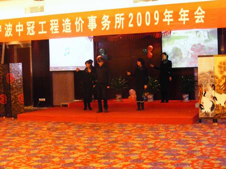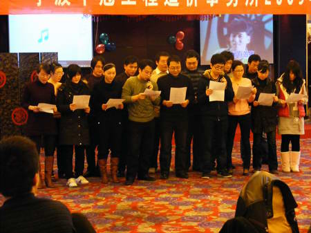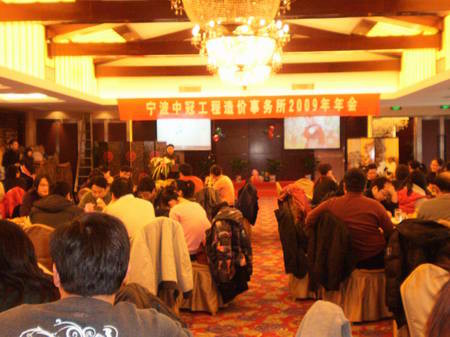 2009年2月7日我公司2009年年会在镇海九龙山庄召开。本次大会在公司领导的关心、各部门的鼎力支持和全体员工德踊跃参与下,取得了圆满成功。大会包含了优秀个人表彰、文艺表演、游戏、宴会、抽奖这五个主要活动环节。