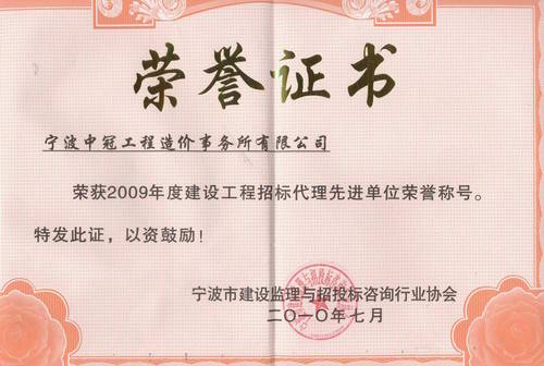 我司荣获2009年度先进建设工程招标代理单位荣誉称号