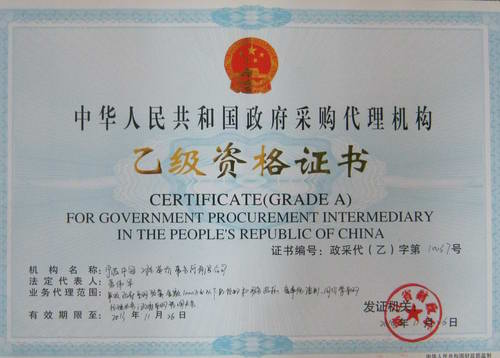 审核,认定我司具有从事政府采购业务代理乙级资格。