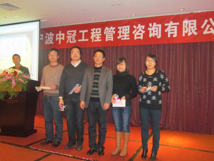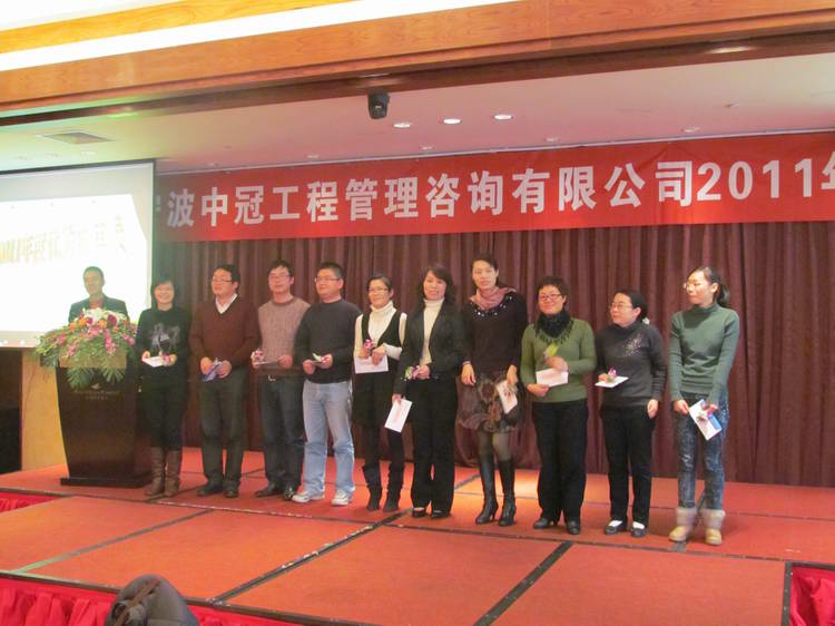首先,在欢快、激情的乐曲声中,开始了表彰大会。公司顾问赵荣焘首先宣读了2011年度公司优秀员工的获奖名单和表彰决定,任福成、徐英健、强计中、马万龙、林肖峰、徐黎燕、孙艳、范琦、潘雅波、韩奇燕等10人荣获2011年度公司优秀员工称号,并每人获奖励2000元现金。其后陈勇副总、张晓坤副总、总师办张丹蕾主任、周巍副主任等依次宣读了对2011年通过注册造价师、注册咨询工程师、招标师、造价员、工程师等25名考试合格人员、参加市知识竞赛3名优秀人员及11名优秀协审人员的表彰决定,并为获奖人员颁发证书及奖金。公司全体员工为获奖员工献上了最热烈的掌声和最真挚的祝贺。