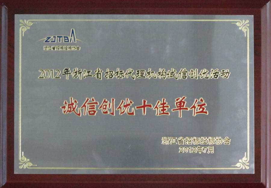 2012年7月20日下午,浙江省招标投标协会召开了第一届二次理事会暨2012年浙江省招标代理机构诚信创优活动表彰大会,对全省范围内的31家诚信创优优胜单位进行了表彰。本次评选活动是浙江招标投标协会第一次举办的招标代理机构诚信创优活动,根据《浙江省招标代理机构诚信创优活动实施办法》,经浙江省招标投标协会诚信创优工作领导小组评审,共评出了10家“诚信创优十佳单位”、8家“诚信创优先进单位”、13家“诚信创优合格单位”。中冠公司荣获“诚信创优十佳单位”,公司执行董事聂伟军到会参加,并在会上接受了协会颁发的证书。 公司办公室 二0一二年 七 月二十三日