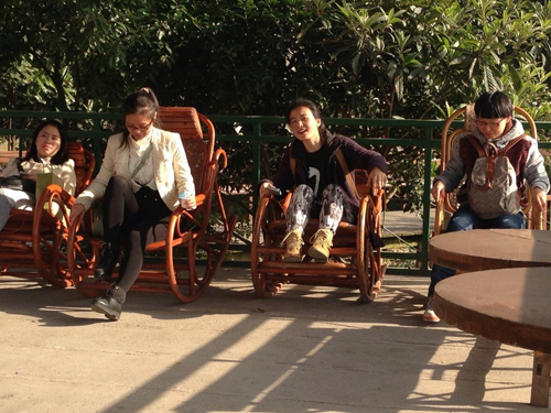 临近黄昏,大家把娱乐项目都玩的差不多了,回到别具风格的芬兰木屋,院子里的风光独好,大家不约而同的围坐在院子里,夕阳透过树梢,斜照在每个同事的脸上,大家畅聊旅行感悟。