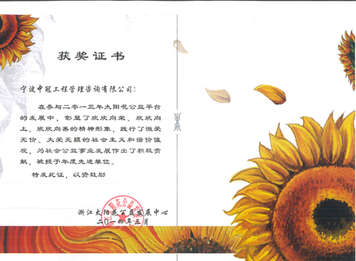 我公司荣获太阳花公益平台“2013年度先进单位”证书-中冠新闻-中冠咨询-ob欧宝官网首页中国有限公司