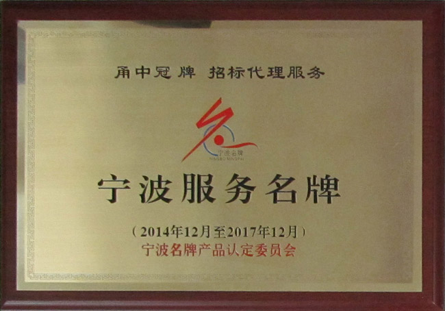 根据宁波名牌产品认定委员会,近期发布的《宁波名牌产品认定委员会公告》,我公司被授予“宁波服务名牌”的荣誉称号。
