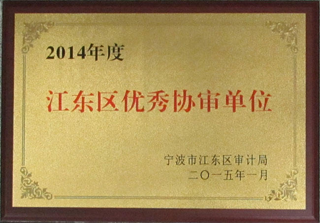 根据宁波市江东区审计局,近期发布的《关于表彰江东区2014年度优秀协审单位和优秀协审人员的通报》,我公司被评选为江东区2014年度优秀协审单位。