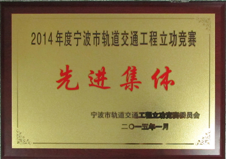 2015年1月喜讯传来,我公司被宁波市轨道交通工程立功竞赛委员会授予“2014年度宁波市轨道交通工程立功竞赛先进集体”的荣誉称号,同时我公司唐虹波同志被授予“先进个人”荣誉称号。