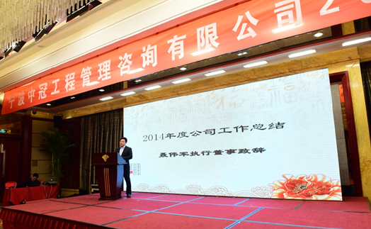表彰结束后,公司执行董事聂伟军作了2014年公司工作总结报告,报告简约回顾了2014年公司取得的成就,着重分析了2015年公司发展的外界环境和形势,提出了公司近期发展目标和要求,并希望全体中冠人再接再厉,为将公司发展成为最优秀的集造价、招标、可研、投资咨询、跟踪审计、财务审计、评估等综合性的专业工程咨询机构,共同努力,共同创造!