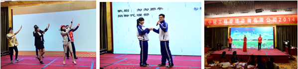 怀远志驰良马,世易新春唤白羊。在羊年来临之际。公司2014年会,于2015年2月14日在杭州湾世纪金源大酒店顺利召开。中冠公司、分公司以及下属公司的全体员工欢聚一堂,细数刚刚迈越的365个昼夜,仿佛是365个台阶,聆听领导们对于去年一年的工作总结,展望公司未来发展的宏伟蓝图。 优秀主管表彰 优秀导师表彰 优秀员工表彰 最佳新人表彰 进、梁岸、赖永辉、范娟、张琳玲、郭晓敏、潘雅波、沈胜男、陈卫华、朱玲玲、殷云云、魏炜文16人荣获2014年度公司优秀员工荣誉称号,孙碧君、盛程聪、杨峰、孙少美、余思倩、方纪伟、周熹照8人荣获2014年度公司最佳新人荣誉称号。紧接着又进行了对2014度荣获各区级优秀协审个人、市级招标代理优秀个人和先进集体、2014年度考试合格人员、公司优秀咨询项目、服务外包优秀个人等获奖人员的表彰仪式,分别由公司副总经理谢慧敏、任福成、总经理助理杨祖迪、总师办主任张丹蕾、综合办公室主任陈黎、以及各分公司经理等依次为获奖人员颁奖。在表彰过程中,会场上不时响起公司全体员工为获奖员工献上的热烈的掌声和真挚的祝贺。 执行董事聂伟军作2014年度公司工作总结报告 接着,第二篇章文艺表演,在招标代理部带来的舞蹈《逗舞》拉开了序幕。整场表演由公司各部门自编自导,表演形式各异,有歌舞、小品、乐器、舞台剧等等,中间还穿插了新颖的游戏环节,令人目不暇接、捧腹大笑,回味无穷。经全体员工投票评比:综合办公室的歌舞剧《老吃货》荣获了一等奖;北仑分公司带来的小品《非雷勿扰》、造价四部的紫光手荧舞《舞动梦想》和造价三部的哑剧《村长盖章》荣获了二等奖;仲冠事务所估价公司的舞蹈《欧洲宫廷秀》、工程造价二部的舞蹈《情迷巴塞罗那》、招标代理部的舞蹈《逗舞》、造价二部的舞台剧《重返青春》、奉化分公司的舞蹈《风情拉丁》荣获了三等奖;招标代理部的歌剧《匆匆那年》、造价三部的小品《唐伯虎点秋香》、造价一部的荧光舞《walking in memphis》、造价四部的舞蹈串烧《小赖哥的奇幻之旅》、舟山分公司的歌曲《春暖花开》、造价一部的小品《奔跑吧,小苹果》获得了优胜奖。 员工文艺表演 精彩纷呈地表演结束后,全体与会人员带着意犹未尽地心情步入了第三篇章团拜晚宴。在觥筹交错之间,同事们的友情得到了进一步的加深!穿插的抽奖及游戏更是让大家惊喜连连、欢声笑语不断!在这欢快、愉悦的气氛中,中冠公司2014年会落下了帷幕! 公司团总支