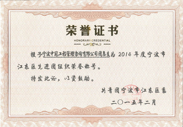热烈祝贺我公司团总支荣获“2014年度宁波市江东区先进团组织”荣誉称号-中冠新闻-中冠咨询-ob欧宝官网首页中国有限公司