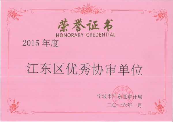 根据宁波市江东区审计局,近期发布的《关于表彰江东区2015年度优秀协审单位和优秀协审人员的通报》,我公司被评选为2015年度江东区优秀协审单位。