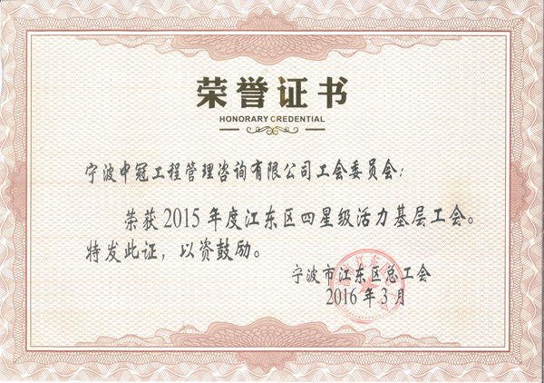 热烈祝贺我公司荣获“2015年度江东区四星级活力基层工会”荣誉称号-中冠新闻-中冠咨询-ob欧宝官网首页中国有限公司