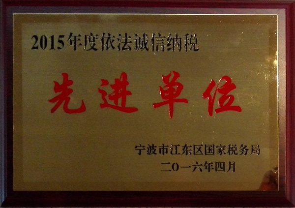 根据江东区国家税务局近期发布的《江东区国家税务局关于表彰2015年度依法诚信纳税先进单位和协税护税先进单位的通报》,我公司被授予“2015年度依法诚信纳税先进单位”荣誉称号。