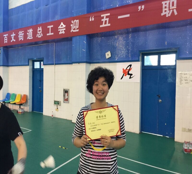 2016年4月26日上午,春雷阵阵、大雨滂沱中,中冠公司的六位同事组队代表公司参加了江东区百丈街道总工会组织的迎五一职工系列运动会羽毛球比赛,经过激烈的循坏比赛,我司综合办公室黄瑾荣誉女子组第四名的好成绩。