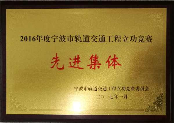 近日我公司被宁波市轨道交通工程立功竞赛委员会授予“2016年度宁波市轨道交通工程立功竞争赛先进集体”的荣誉称号,同时我公司范琦同志被授予“2016年度宁波市轨道交通工程立功竞赛活动先进个人”荣誉称号。 特此报喜