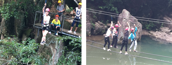 经过上午的热身,下午开始了第九洞天穿越。看着那一道道关卡,大多数同事的心里是忐忑控慌的,但谁都不愿意做胆小的那个人,在大家相互协助下,一个个都完成了最后的闯关。