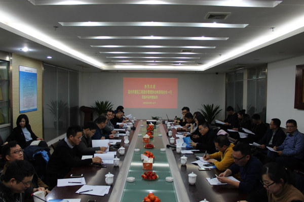 1月17日下午,温州市建设工程造价管理协会林游海会长一行携温州地区知名造价行业企业家老总、技术负责人等共32人,莅临中冠总部考察指导,我司执行董事兼总经理聂伟军、副总经理张晓坤、总工程师/技术负责人周巍参加了座谈交流。