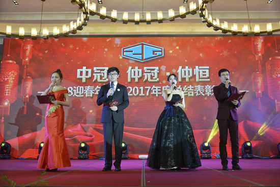 2018年2月11日,中冠·仲冠·仲恒—2018迎春年会暨2017年度总结表彰大会,在宁波工疗·半边山度假酒店隆重举行。