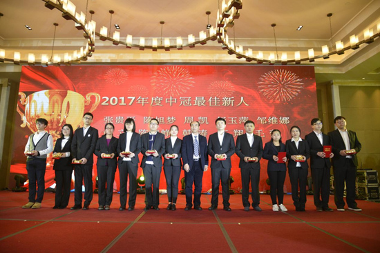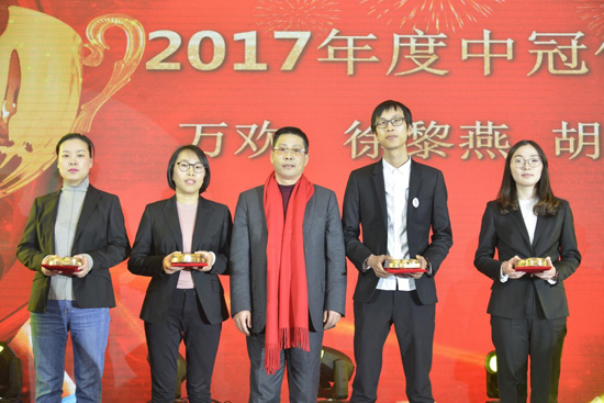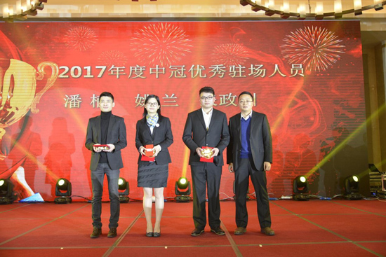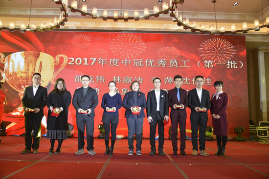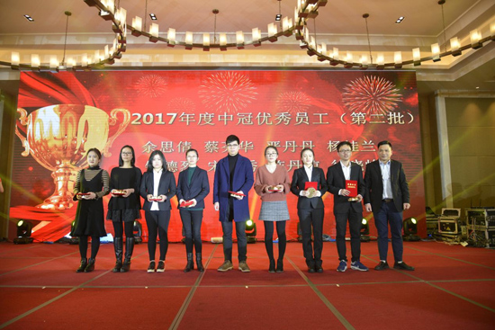 表彰大会,首先进行了中冠2017年度员工表彰,公司常务副总经理陈勇、副总经理张晓坤、党总支副书记徐可平、总工程师周巍、副总经理谢慧敏、副总经理任福成、总经理助理杨祖迪等有关领导与嘉宾向荣获2017年度中冠优秀主管、中冠优秀导师、中冠优秀员工、中冠优秀驻场员工、中冠最佳新人、中冠最佳市场开拓个人以及2017年各类考试通过人员、各类优秀集体、优秀个人、先进个人等给予表彰颁奖,并号召全公司同事向他们学习。主持人并对获奖人员代表进行了现场采访,获奖代表均表示将在新的一年里再接再励、努力工作,为中冠公司的发展贡献自己的力量。
