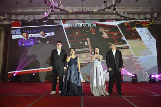 公司党总支副书记、公司年会总导演徐可平;公司综合办公室副主任、公司年会副总导演郭钱蕾;公司团总支书记、公司年会副总导演章日月;公司年会会务组副组长吴鸿仕;公司团总支副书记、公司年会会务组副组长王乐剑为欢乐中冠·汇演获奖的节目进行了颁奖。
