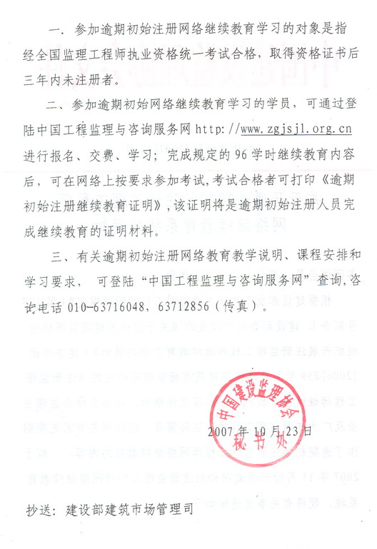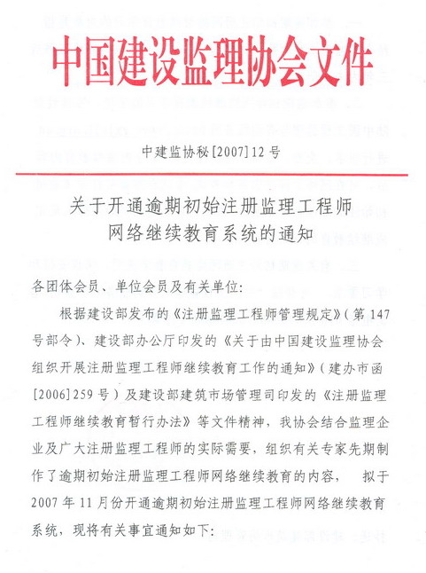 关于开通逾期初始注册监理工程师网络继续教育系统的通知